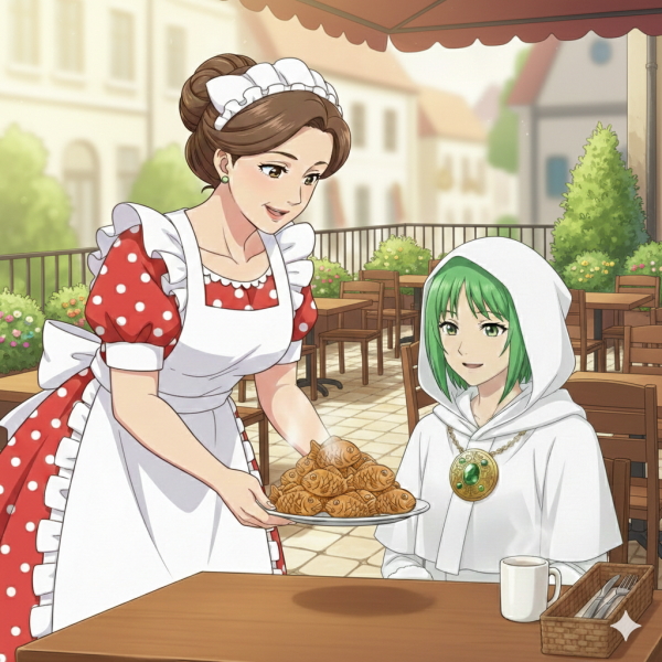 多分彼女も冒険後に仲間と別れ,宿に帰る前に盛大に間食をしているのだろう。